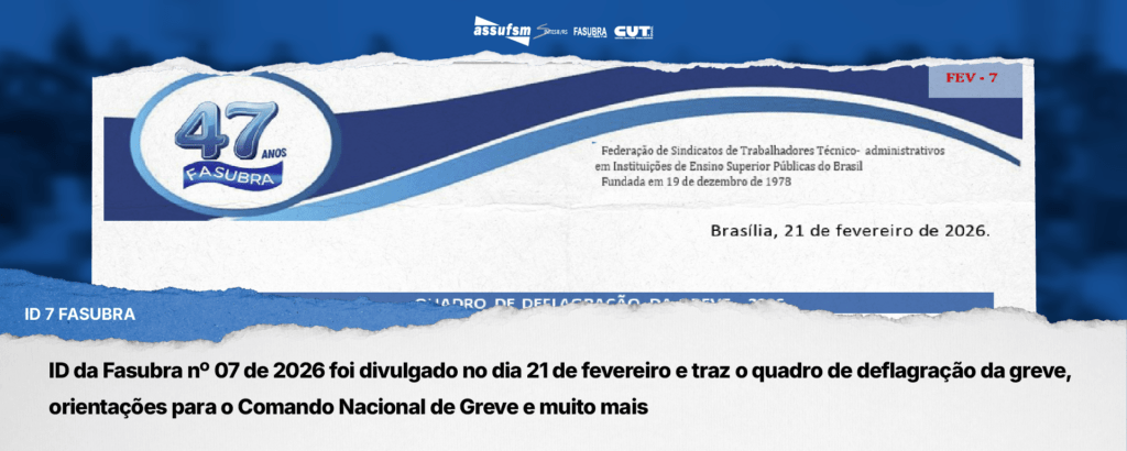 ID da Fasubra nº 07 de 2026 foi divulgado no dia 21 de fevereiro e traz o quadro de deflagração da greve, orientações para o Comando Nacional de Greve e muito mais