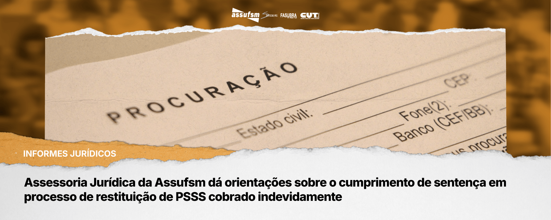 Assessoria Jurídica da Assufsm dá orientações sobre o cumprimento de sentença em processo de restituição de PSSS cobrado indevidamente