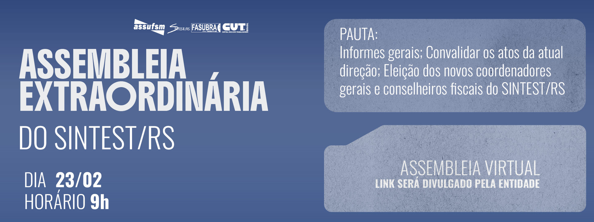 A Coordenação do SINTEST/RS publicou o Edital 001/2026 convocando os integrantes da categoria e os coordenadores de base para Assembleia Extraordinária. A Assembleia será realizada