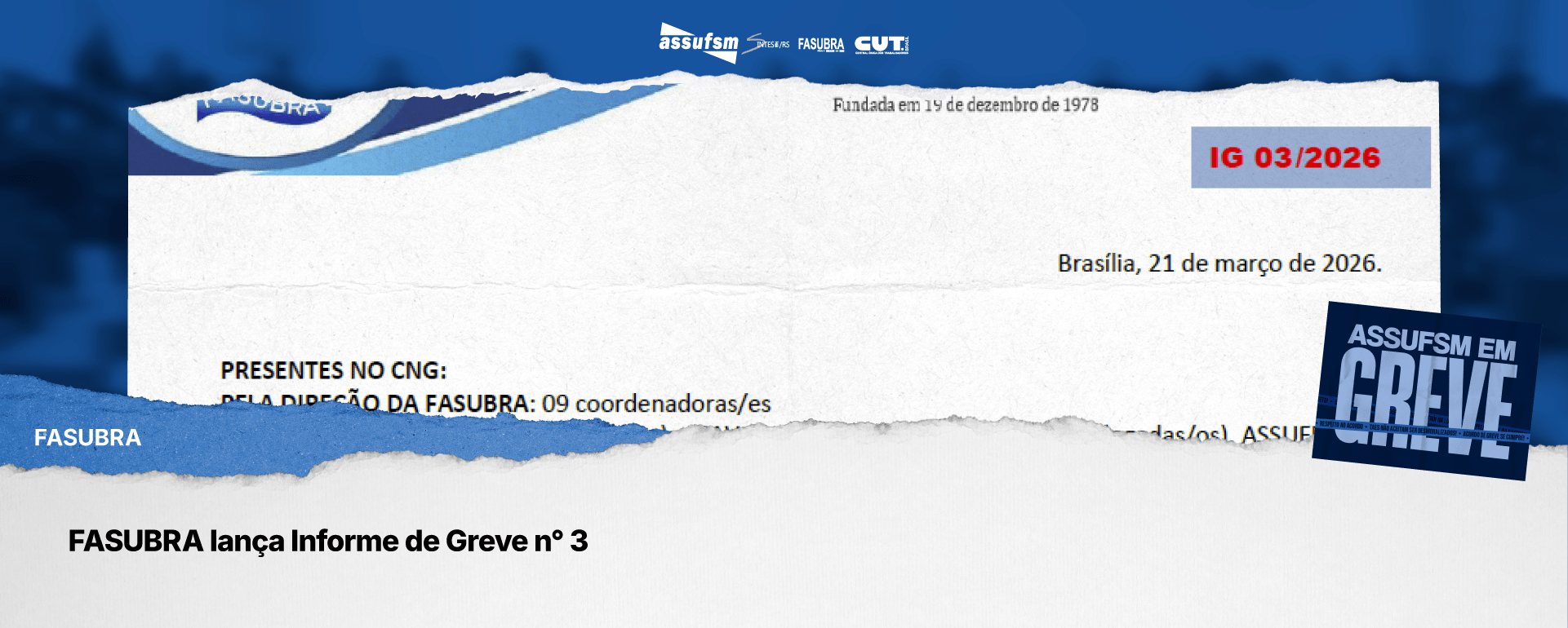 A Assufsm realiza a Assembleia Temática de Greve, na próxima quarta-feira (25), às 14h, no Auditório do prédio 74C, no CCSH. A assembleia será um espaço fundamental