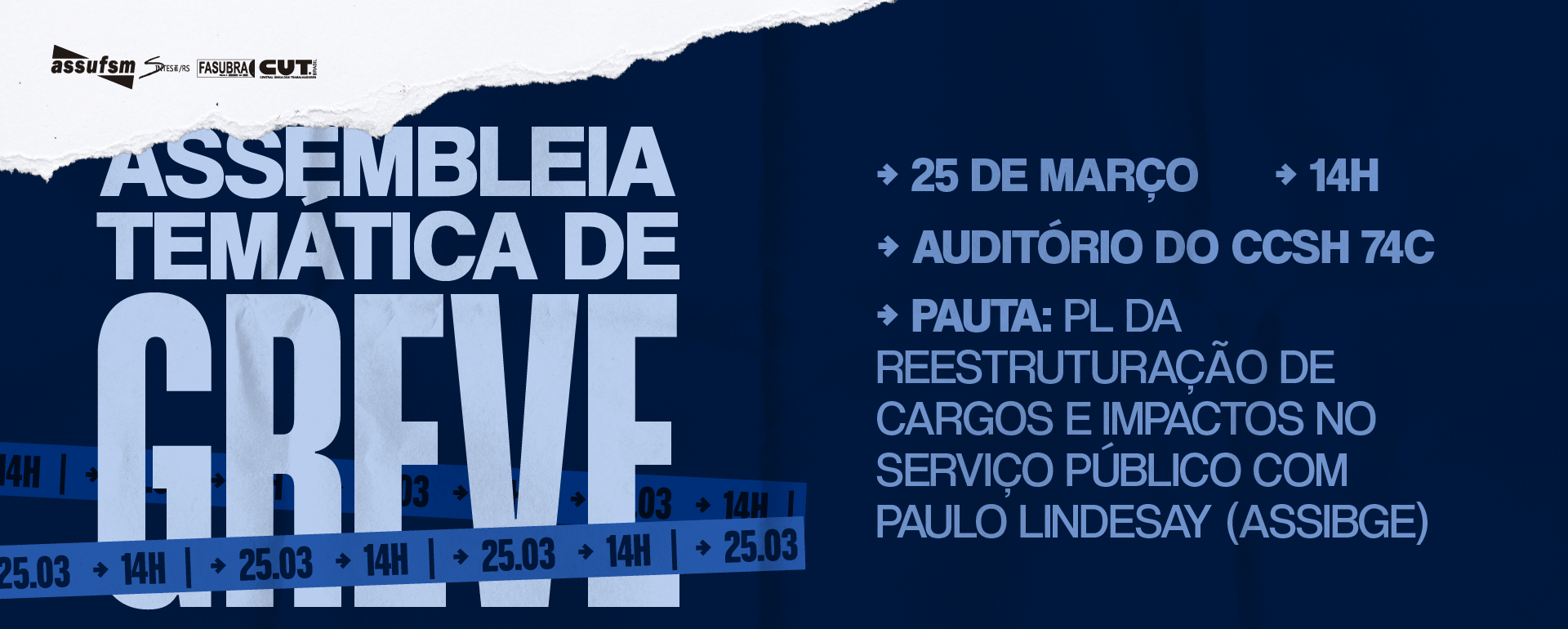 AGORA É GREVE: Assembleia Temática de Greve acontece na próxima quarta (25), no Auditório do prédio 74C, no CCSH e contará com a presença online de Paulo Lindesay