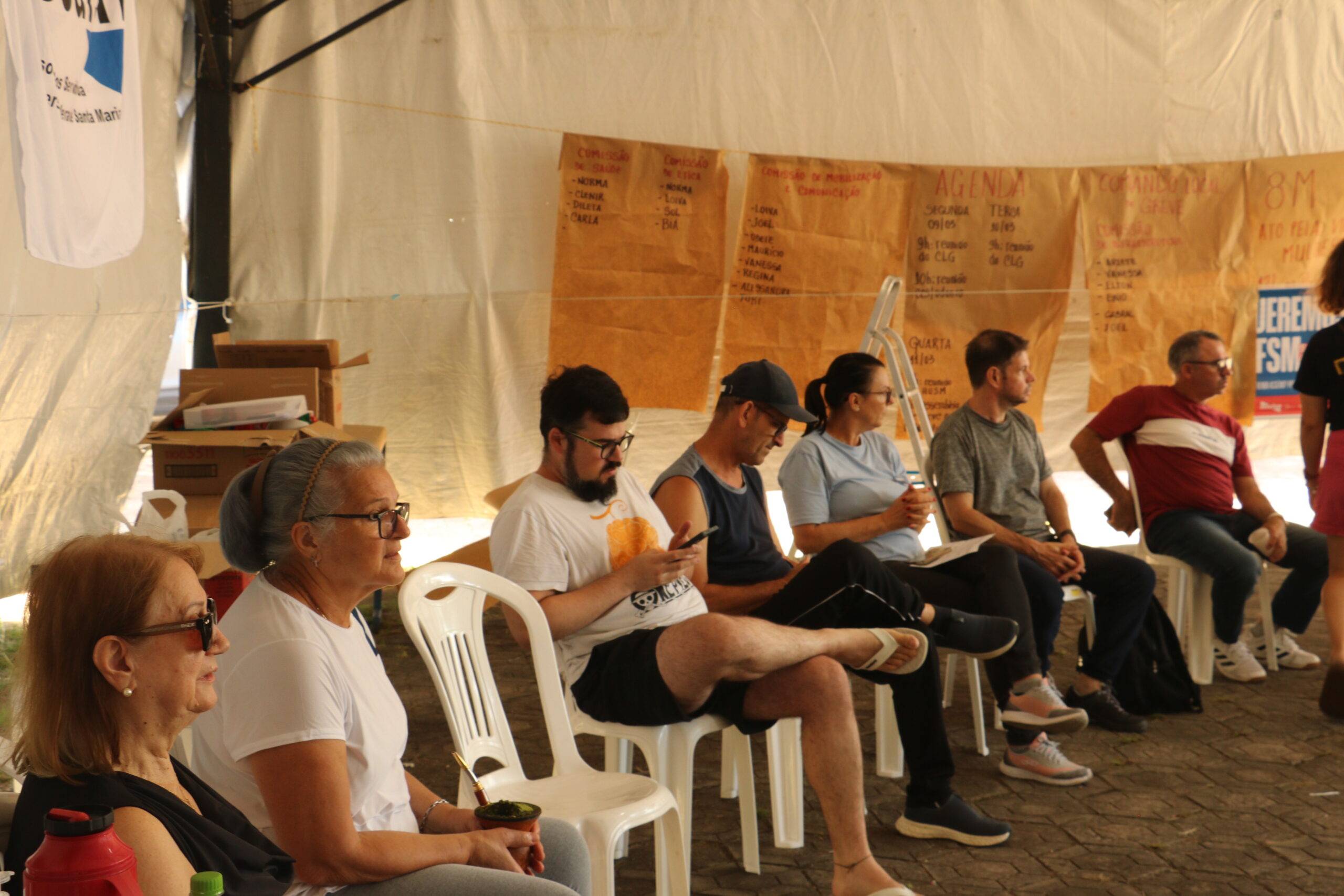 Nesta sexta-feira (06), no 12º dia de greve das e dos Técnico-Administrativos em Educação da UFSM, as comissões de greve se reuniram no lonão da greve para discutir e organizar as próximas atividades de mobilização do movimento.