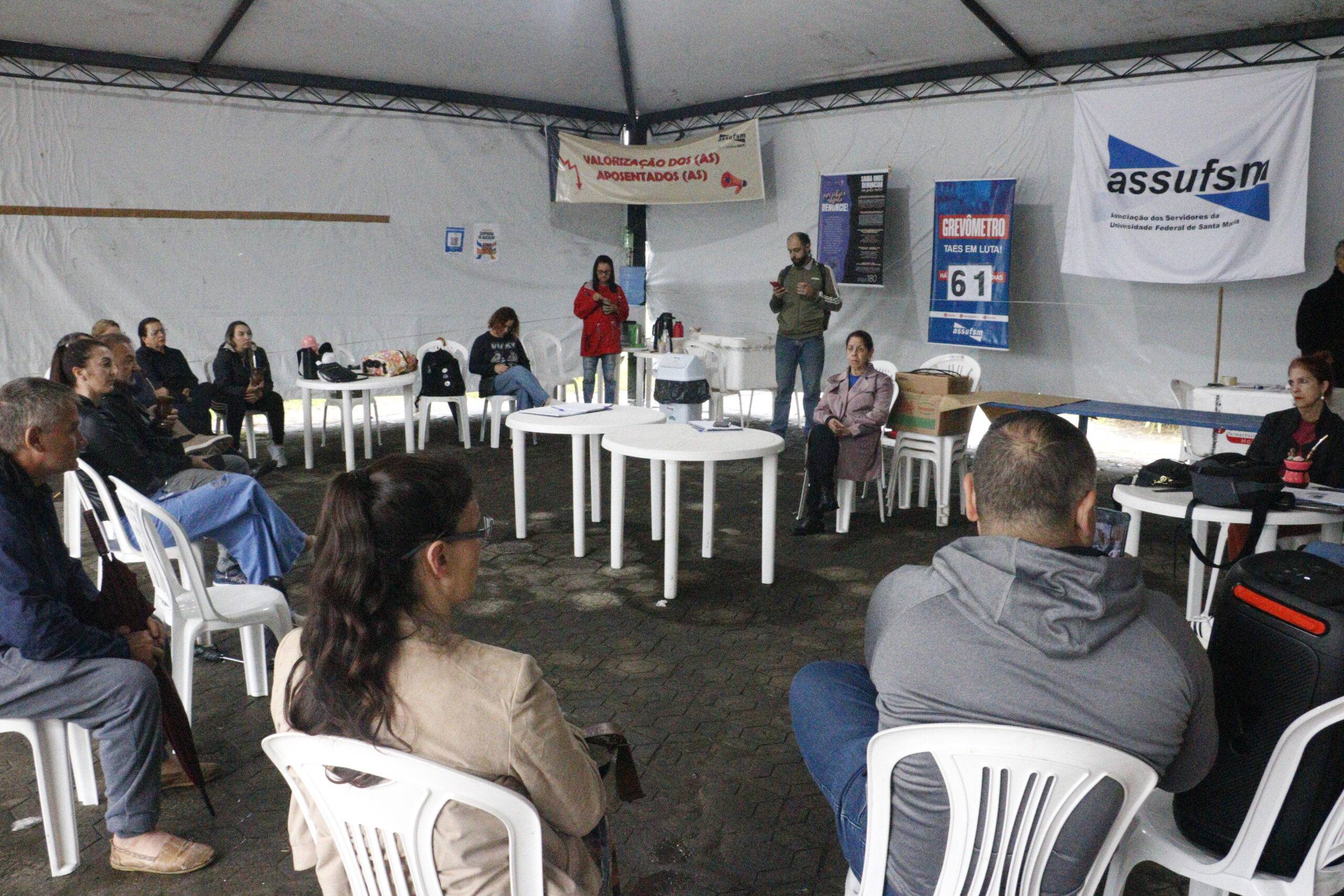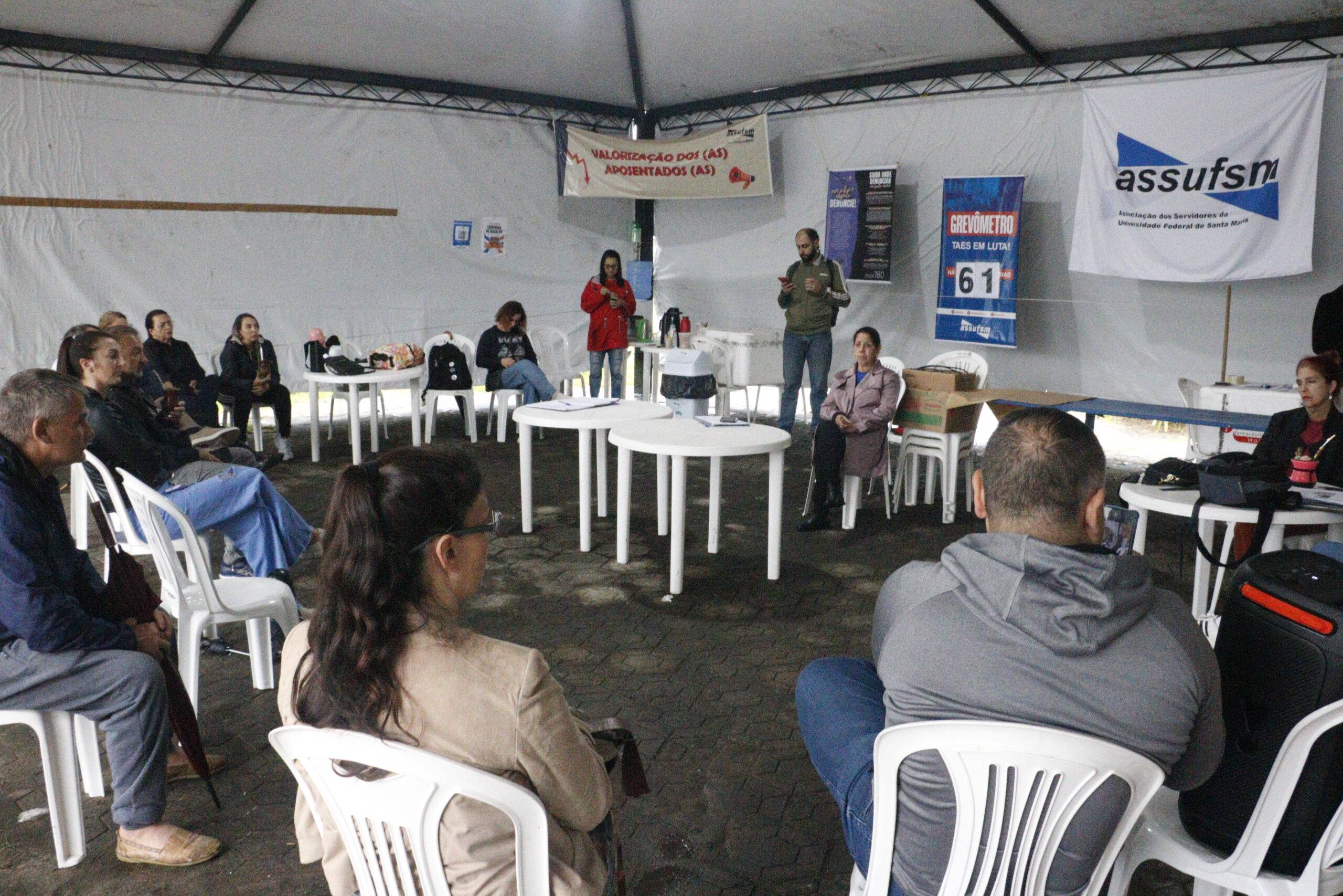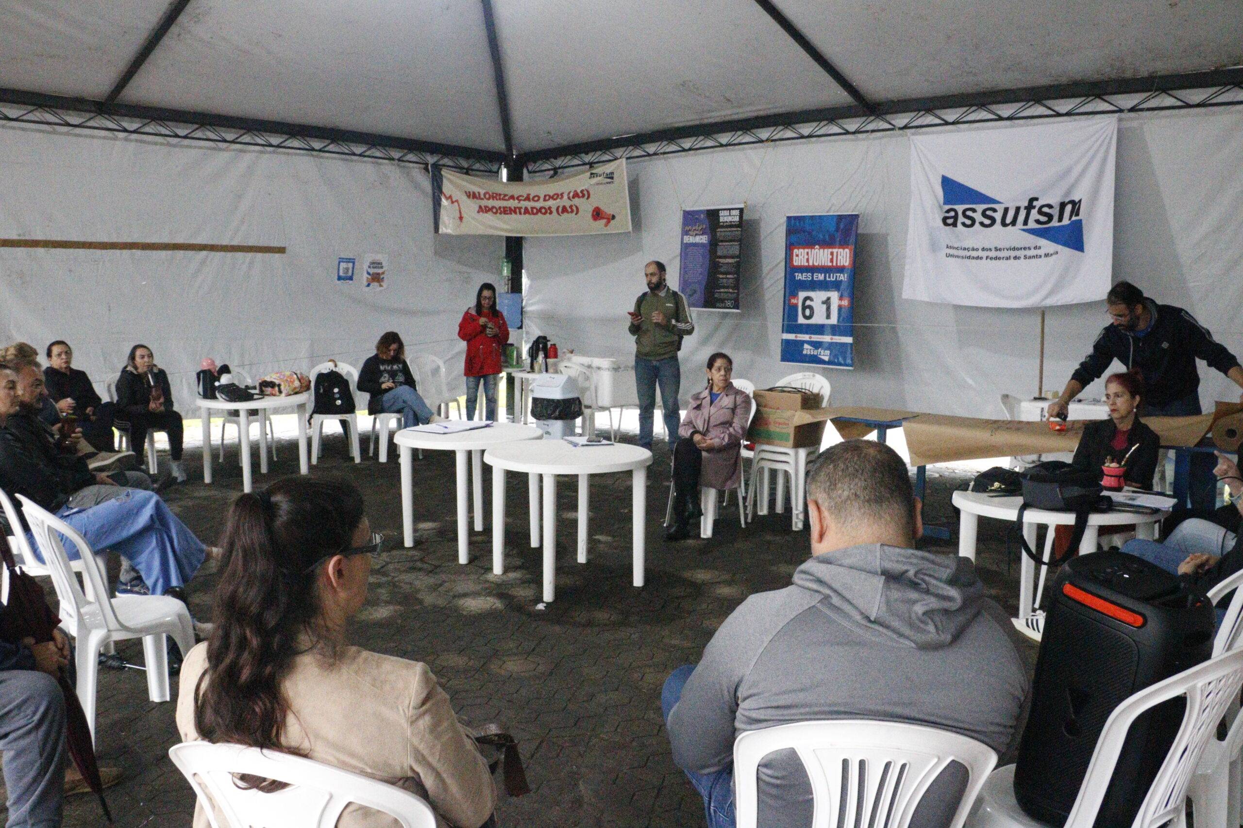 A reunião do Comando Local de Greve (CLG), realizada na manhã desta sexta-feira (24), no lonão da greve, marcou o 61º dia de paralisação da categoria.