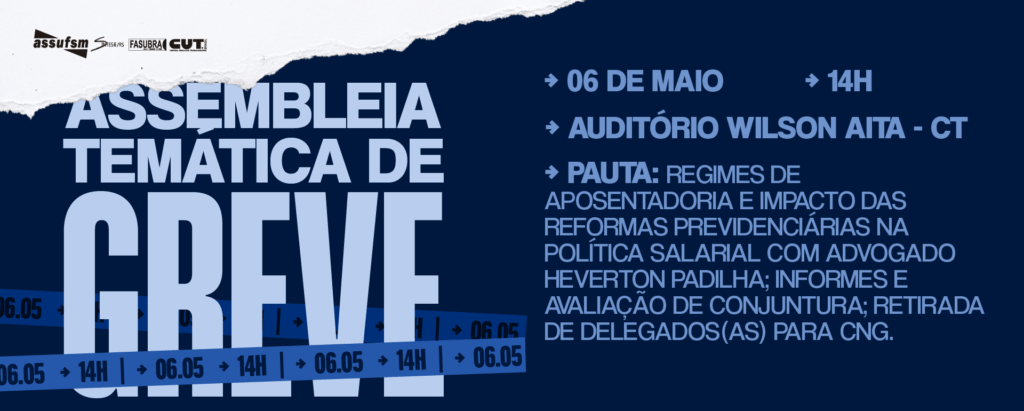 Assembleia temática de greve debate regimes previdenciários e outros temas na quarta-feira (06)