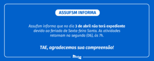 Qualquer dúvida você pode entrar em contato com a coordenação da Assufsm.