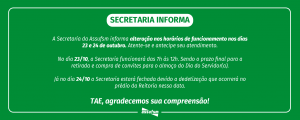 Alteração nos horários da Secretaria da Assufsm nos dias 23 e 24 de outubro