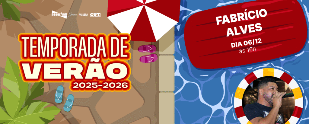 ➡No sábado, dia 6 de dezembro, Fabrício Alves irá se apresentar na Sede Campestre da Assufsm.