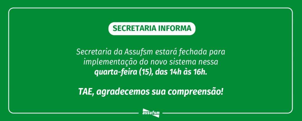 Secretaria da Assufsm estará com implementação de novo sistema na tarde de quarta (14)