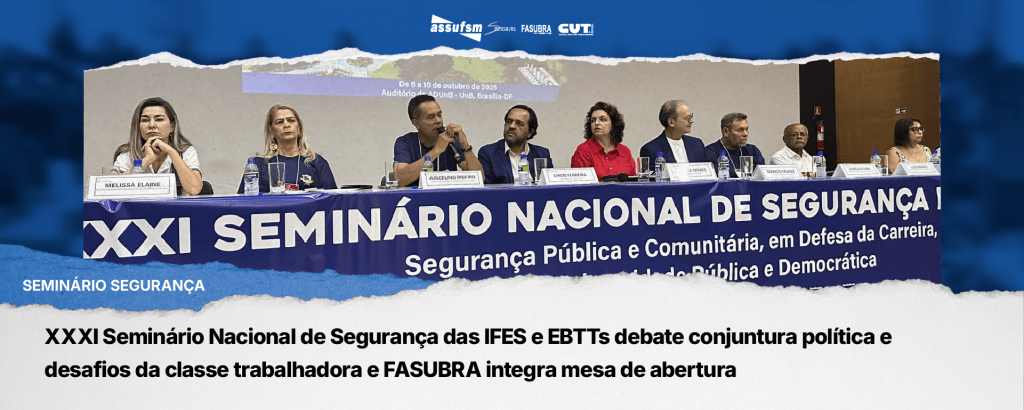 O primeiro dia do XXXI Seminário Nacional de Segurança das Instituições Federais de Ensino Superior (IFES) e EBTTs, realizado no auditório da ADUNB, em Brasília (DF), foi marcado por intensos debates sobre a conjuntura política, econômica e social que afeta a classe trabalhadora e o serviço público no Brasil. Representantes sindicais, servidores Técnico Administrativos(as) em […]
