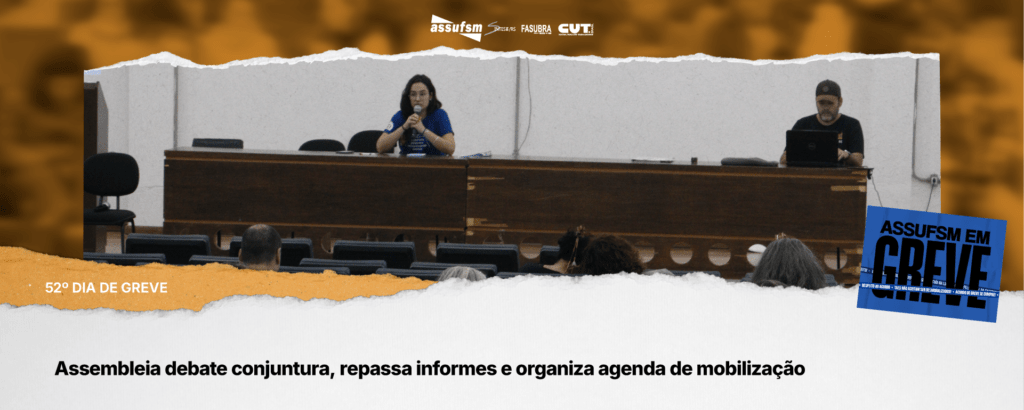 Na tarde quente dessa quarta-feira (04), o movimento paredista esteve reunido no Auditório do Wilson Aita, no Centro de Tecnologia (CT), para debater ações da greve. Dentre as pautas: foram repassados informes locais e nacionais, como: -> A FASUBRA está estudando e trabalhando à respeito da PL 6.170/2025, do RSC, bem como está debatendo sobre […]