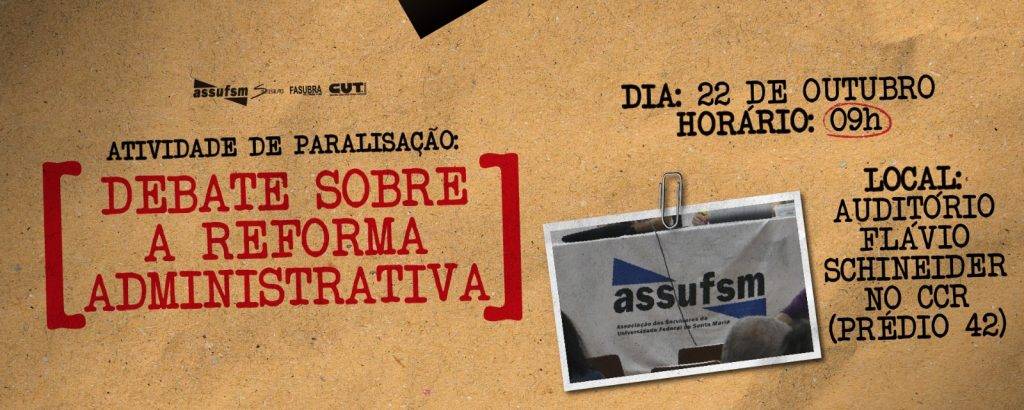 Em deliberação recente, na Assembleia Geral da tarde de quarta-feira (08), a categoria aprovou a realização da paralisação das atividades no dia 22 de outubro, como forma de mobilização e posicionamento diante dos impactos da proposta de Reforma Administrativa. Durante a paralisação, ocorrerá um debate sobre a Reforma Administrativa, agendado para as 9h, no Auditório […]
