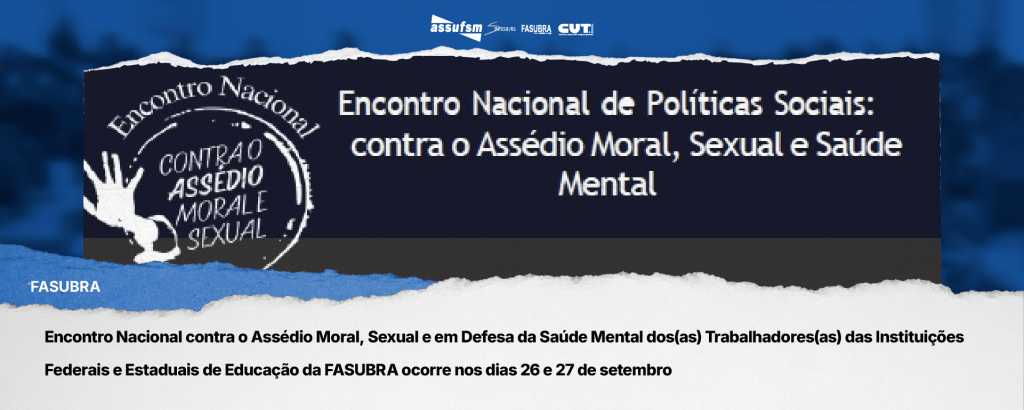 Encontro Nacional contra o Assédio Moral, Sexual e em Defesa da Saúde Mental dos(as) Trabalhadores(as) das Instituições Federais e Estaduais de Educação da FASUBRA ocorre nos dias 26 e 27 de setembro