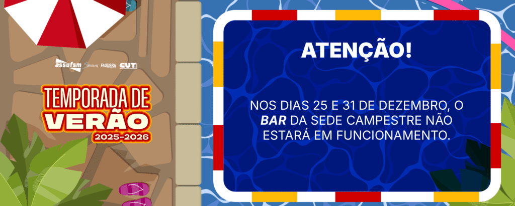 TEMPORADA DE VERÃO: Bar da Sede Campestre não estará aberto nos dias 25 e 31 de dezembro
