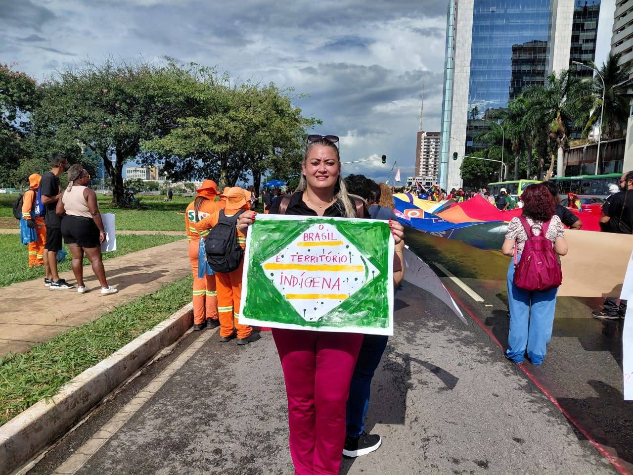 No ato, que reuniu povos indígenas de todo o país, representantes da Assufsm e outros integrantes do Conselho Nacional de Greve (CNG) levaram faixas e cartazes em apoio às reivindicações como a demarcação de terras, o cenário eleitoral e a formulação de políticas públicas. Nos quase 5km de caminhada, os(as) delegados(as) também conversaram com a liderança Kamaywha Tupinambá de Olivença que falou sobre a importância da luta e da demarcação dos territórios, “A terra é vida para nós e sem ela nós morreremos”.
