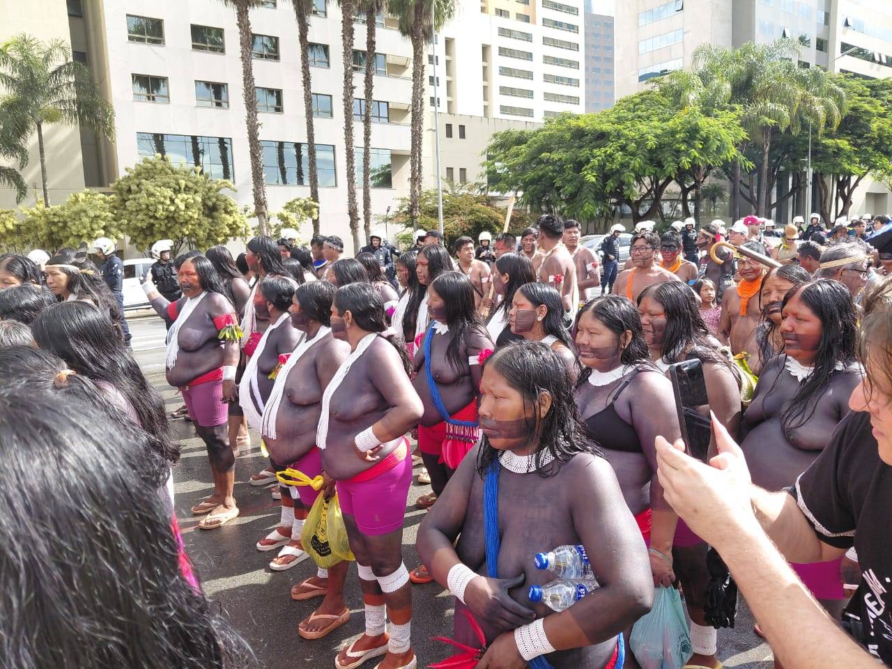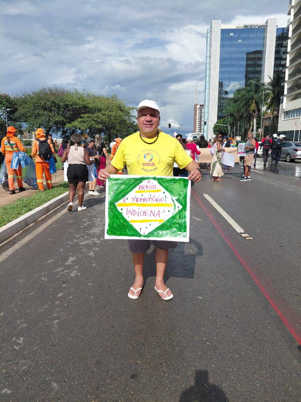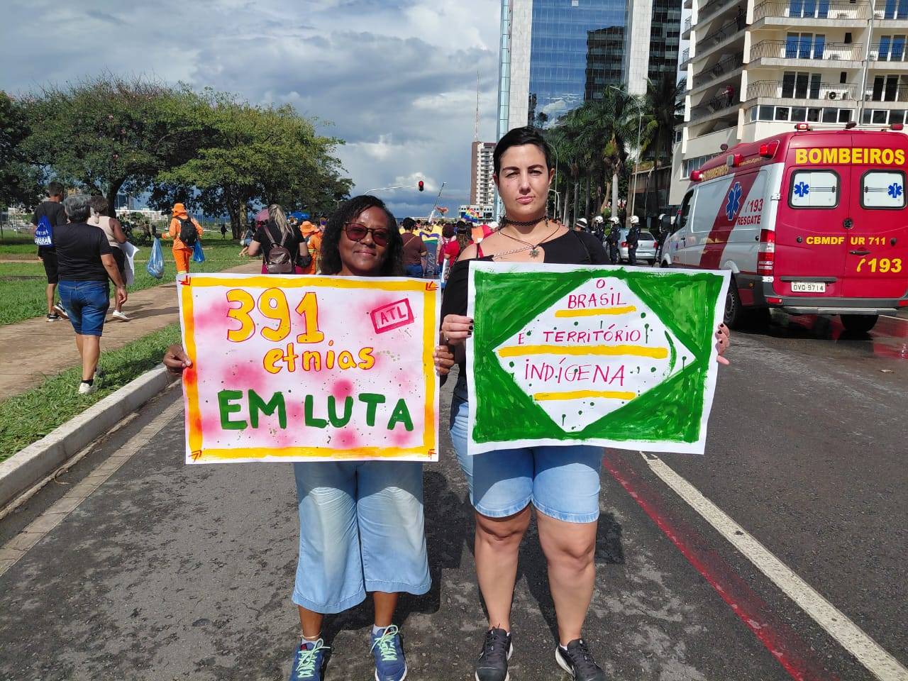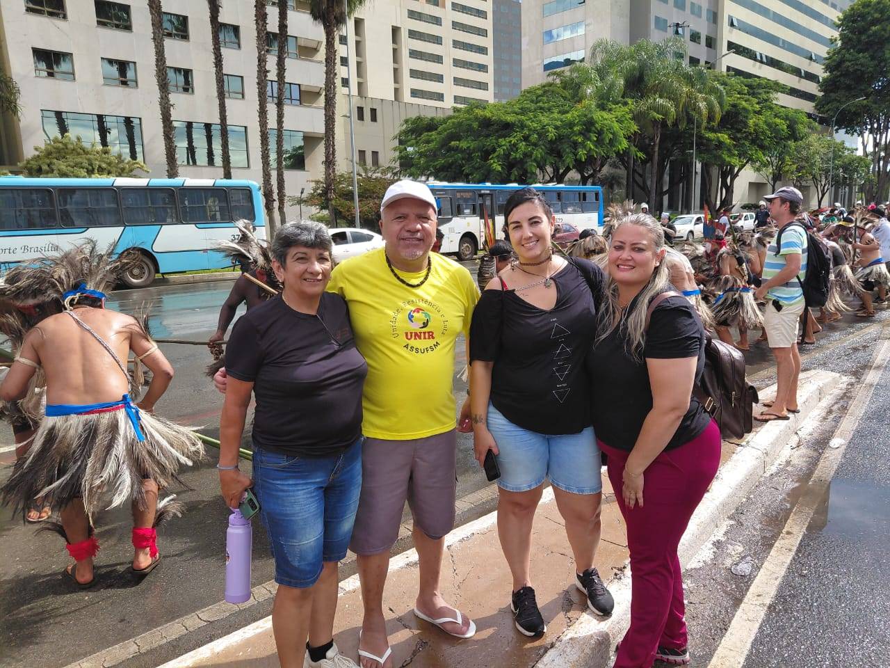 No ato, que reuniu povos indígenas de todo o país, representantes da Assufsm e outros integrantes do Conselho Nacional de Greve (CNG) levaram faixas e cartazes em apoio às reivindicações como a demarcação de terras, o cenário eleitoral e a formulação de políticas públicas. Nos quase 5km de caminhada, os(as) delegados(as) também conversaram com a liderança Kamaywha Tupinambá de Olivença que falou sobre a importância da luta e da demarcação dos territórios, “A terra é vida para nós e sem ela nós morreremos”.