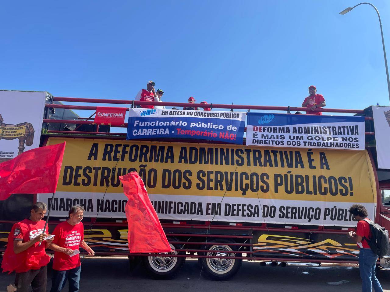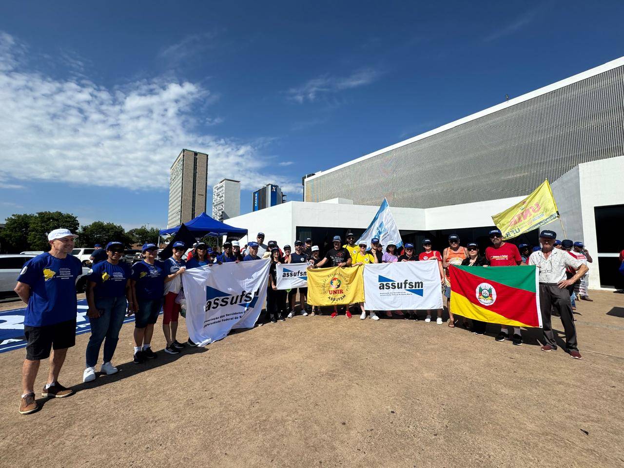 Nesta quarta-feira (29), dia de paralisação da categoria TAE, caravaneiros e caravaneiras da Assufsm se somam à Marcha Unificada do Serviço Público contra a Reforma Administrativa, em Brasília. A Marcha tem como objetivo fortalecer a resistência nacional contra a reforma Administrativa, que é apresentada como forma de combater os supersalários, embora eles representem apenas 0,3% do funcionalismo. Na verdade, a proposta põe em risco a estabilidade dos servidores, enfraquece o serviço público e deve piorar o atendimento à população.
