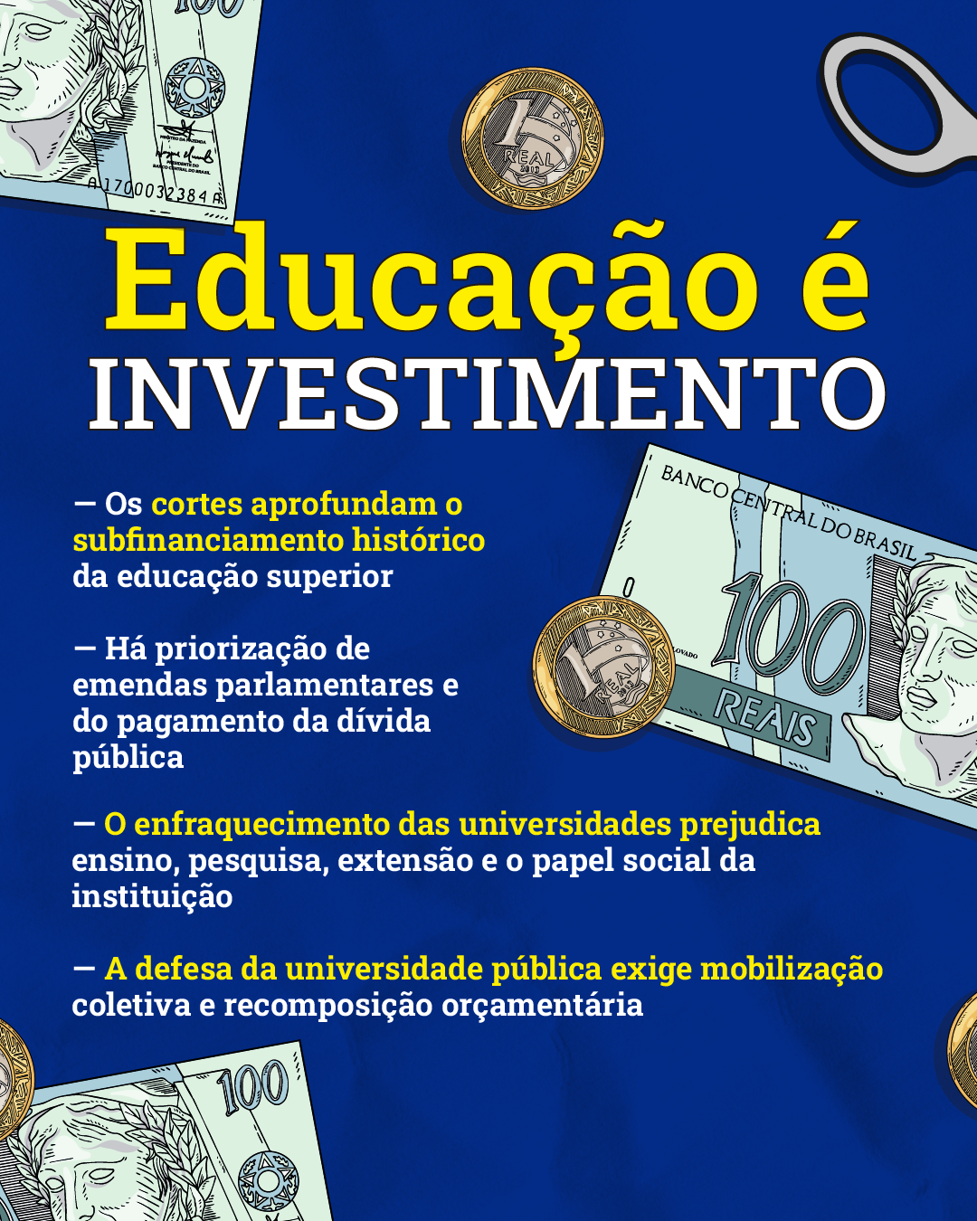 A UNE também destaca que cerca de R$ 2,8 trilhões do orçamento federal (aproximadamente 45%) estão comprometidos com o pagamento da dívida pública, o que, segundo a entidade, evidencia uma escolha política que prioriza os rentistas em detrimento do investimento em educação, ciência e permanência estudantil.