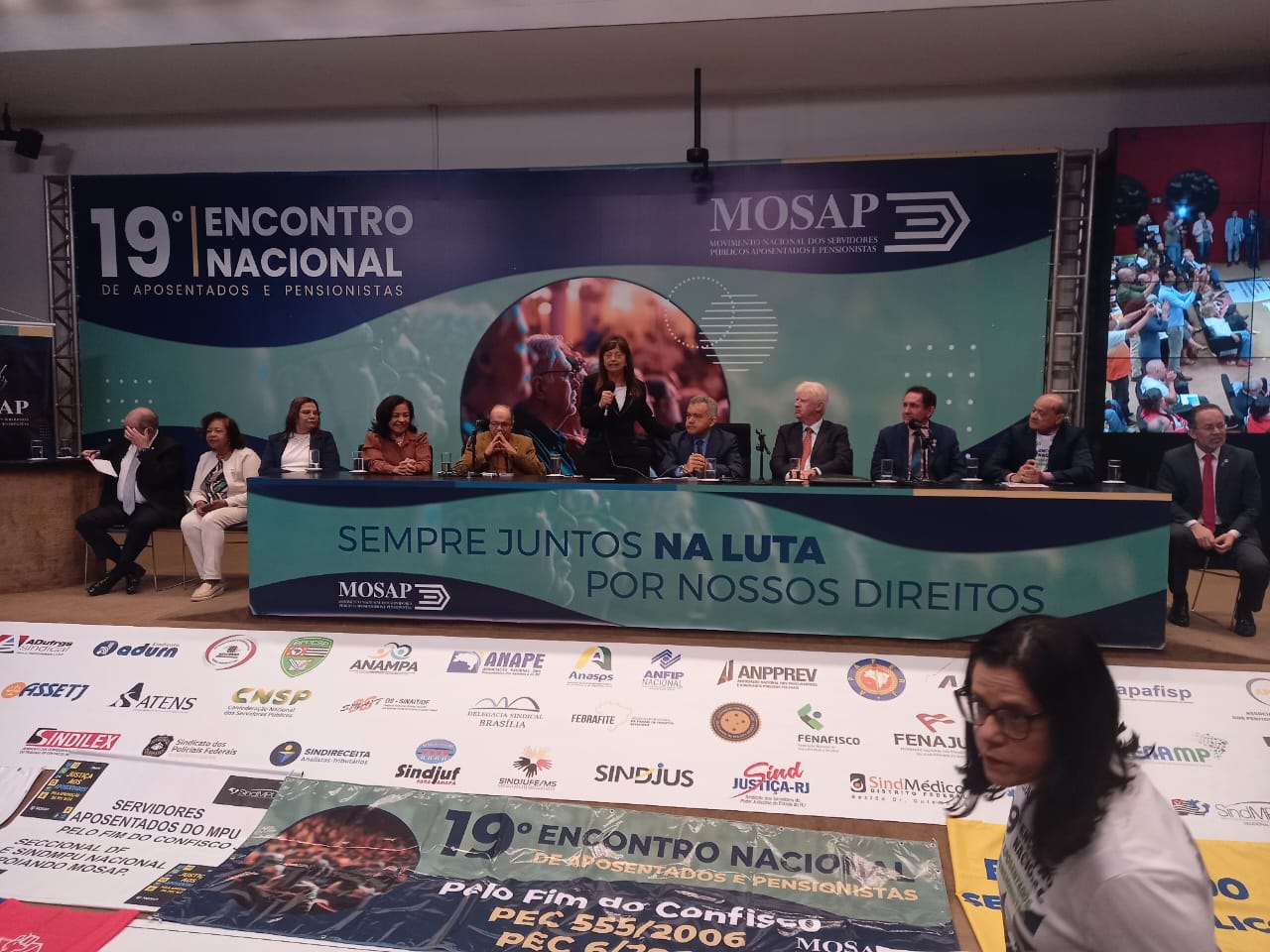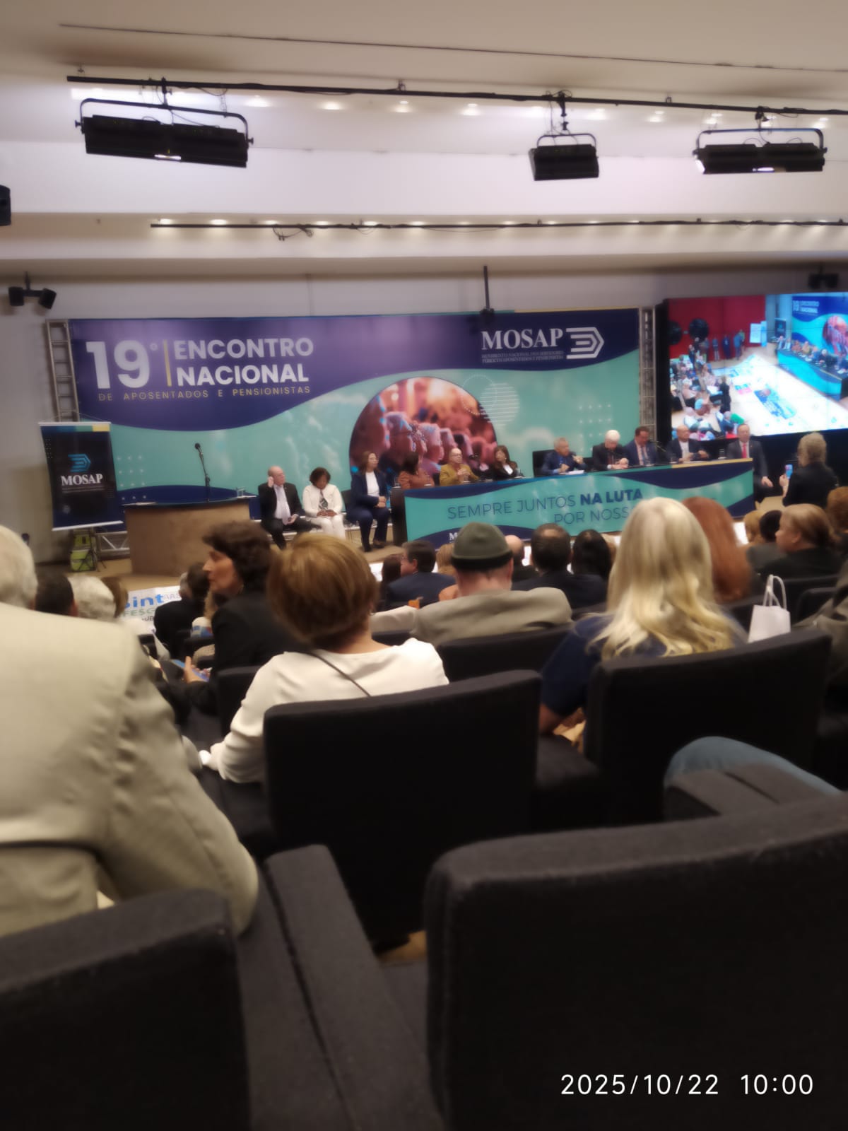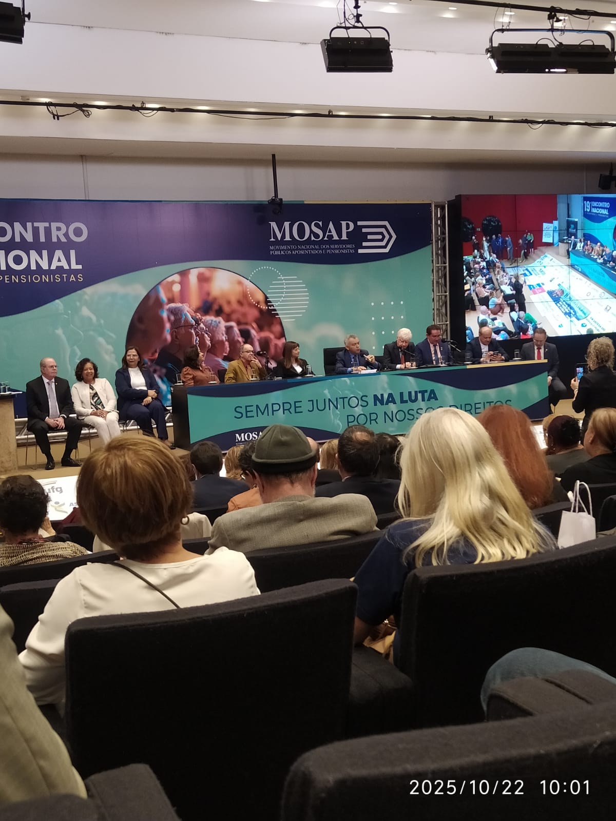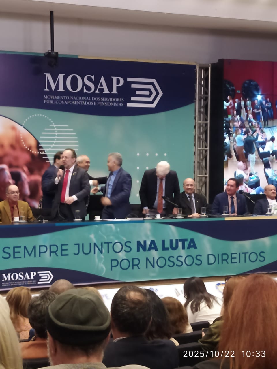 “Como presente para o dia do Servidor Público, 28 de outubro, aposentados(as) e pensionistas do Regime Próprio de Previdência Social (RPPS) esperam que o presidente da Câmara, Hugo Motta, autorize o apensamento das PECs 555/2006 e 006/2024, que dispõem sobre o desconto previdenciário para quem ganha acima do teto da Previdência (8.157,41). O requerimento para o apensamento já conta com 300 assinaturas de parlamentares, a favor, e pode ir a Plenário sem precisar passar por comissões”. A afirmação é do deputado Cleber Verde (MDB-MA), autor da PEC 006/2024, durante o 19° Congresso do Movimento Nacional dos Servidores Públicos Aposentados e Pensionistas (MOSAP), realizado dia 22, no auditório Nereu Ramos da Câmara dos Deputados.