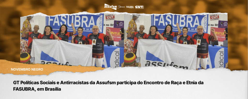 Além disso, o GT Políticas Sociais e Antirracistas da Assufsm enviou para a FASUBRA algumas propostas antirracistas para superação das desigualdades de gênero e raça nas IFES: