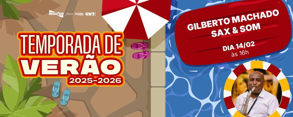 🎷 No dia 14 de fevereiro, a Sede Campestre da Assufsm recebe Gilberto Machado SAX & SOM no Happy Hour da Temporada de Verão.