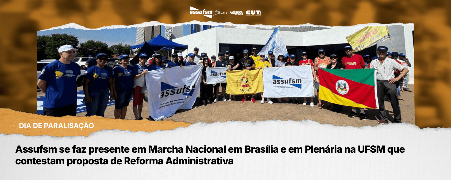 Nesta quarta-feira (29), dia de paralisação da categoria TAE, caravaneiros e caravaneiras da Assufsm se somam à Marcha Unificada do Serviço Público contra a Reforma