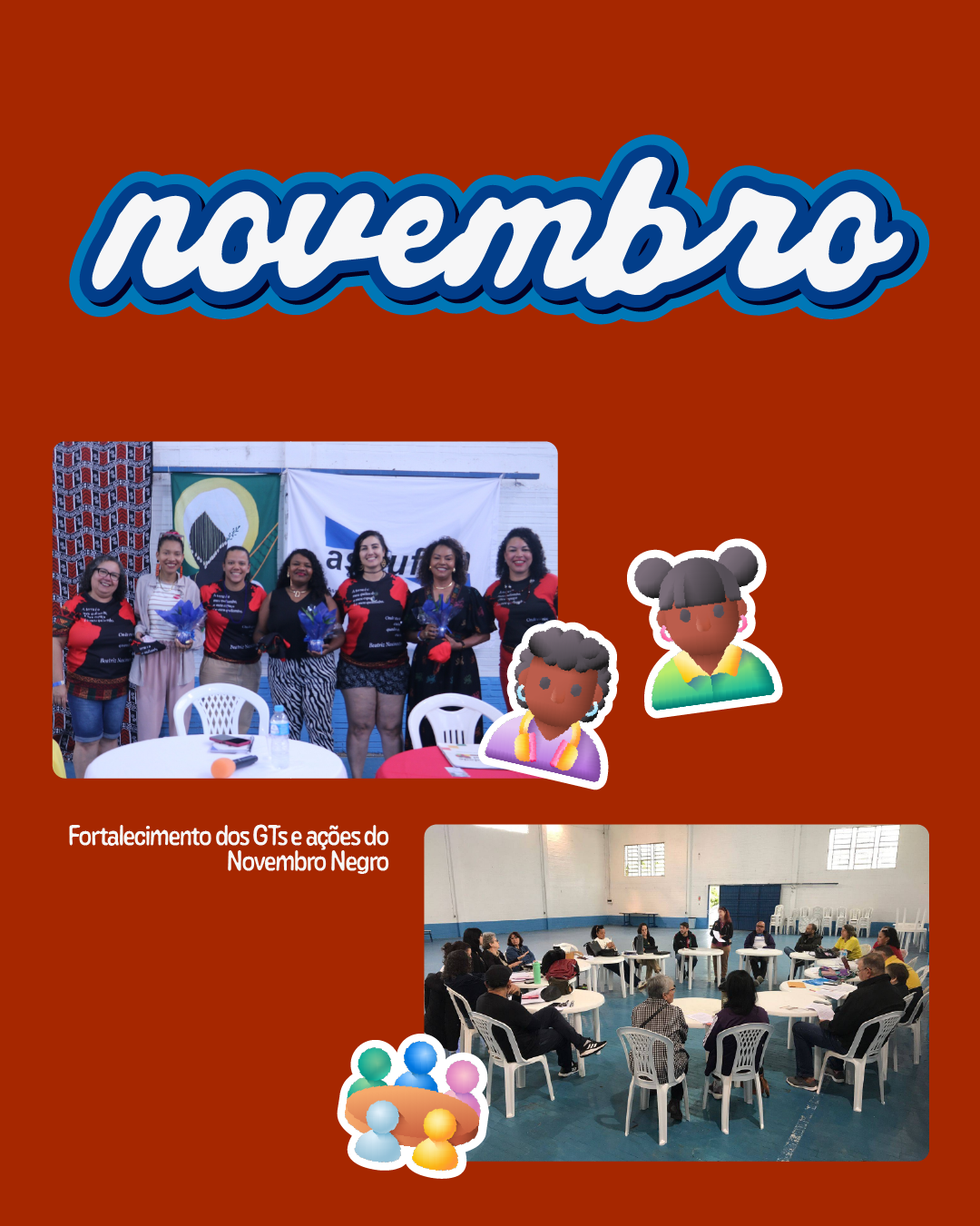 Novembro também foi marcado pela organização e fortalecimento dos Grupos de Trabalho, com destaque para o GT Mulheres Trabalhadoras, que definiu sua agenda anual de atividades, e para as ações do Novembro Negro, com rodas de conversa, debates, atividades culturais e comunicação sindical voltadas ao enfrentamento do racismo, à valorização da negritude e à promoção da equidade.