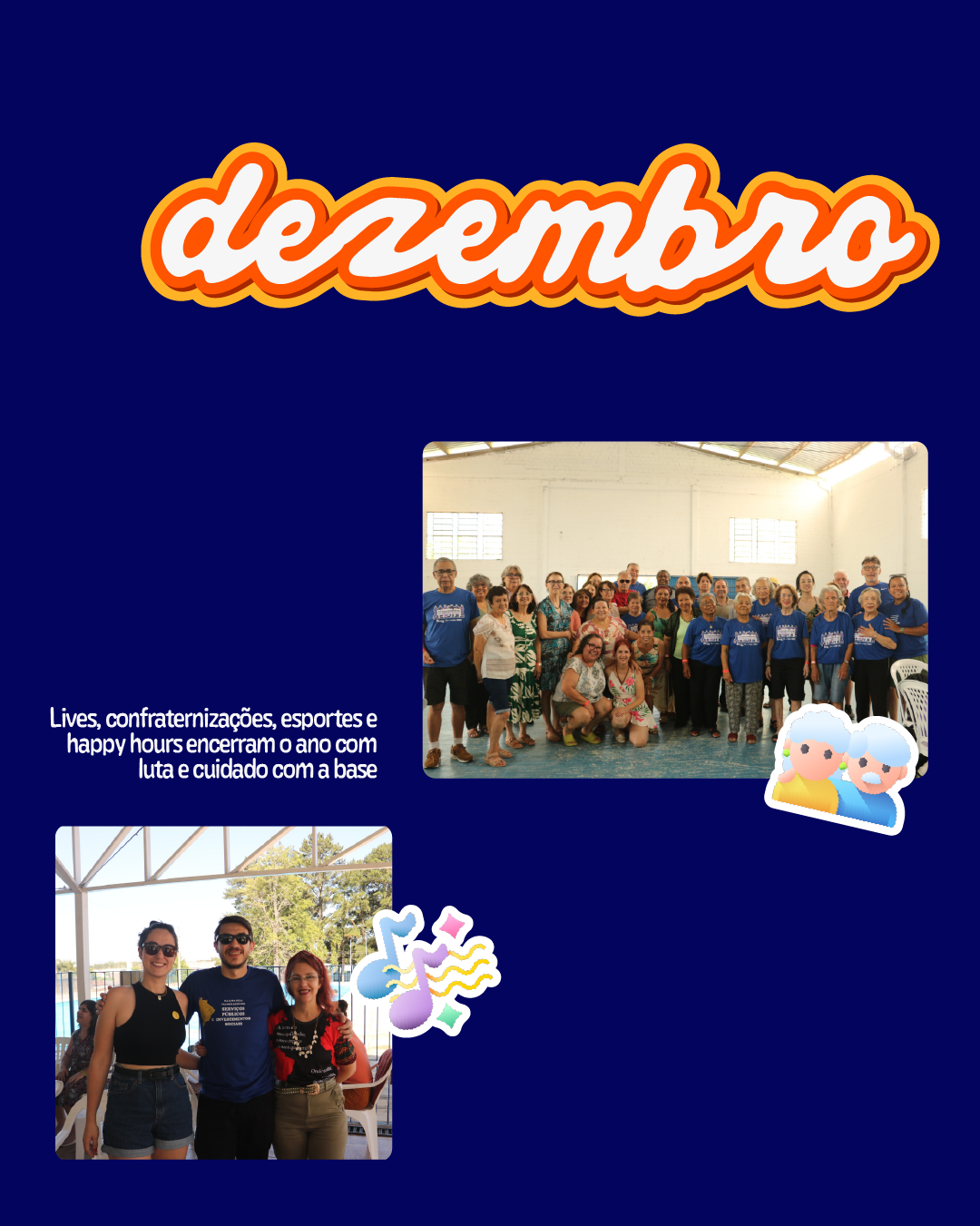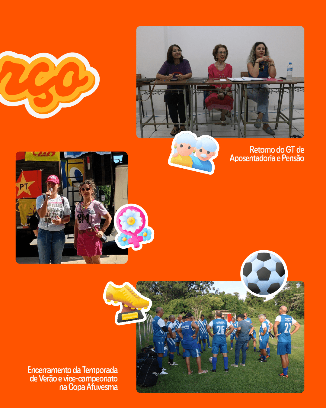 No eixo de Esporte, Cultura e Lazer, fica reservado o espaço para registro da final da Copa Afuvesma – categoria 65 anos, fortalecendo a memória esportiva e a integração da categoria. Já na Sede Campestre, os sábados foram animados com Happy Hour com música ao vivo, reafirmando o compromisso do sindicato com o lazer, a cultura e o bem-estar dos(as) filiados(as).
