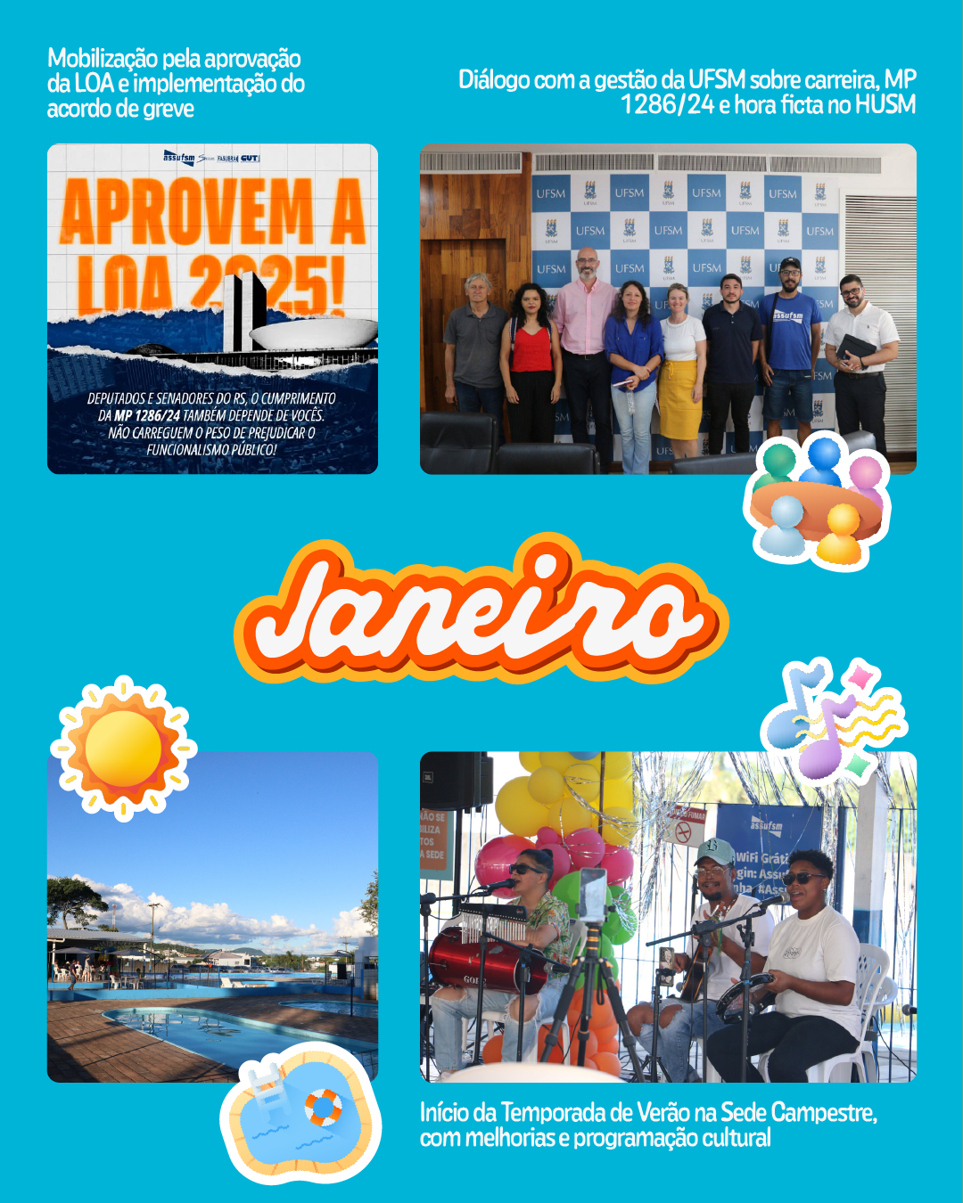 O mês de janeiro foi marcado por mobilização política, diálogo com a gestão e ações de integração da categoria. A Assufsm atuou na campanha pela aprovação da LOA, fundamental para a efetivação do acordo de greve firmado em 2024.